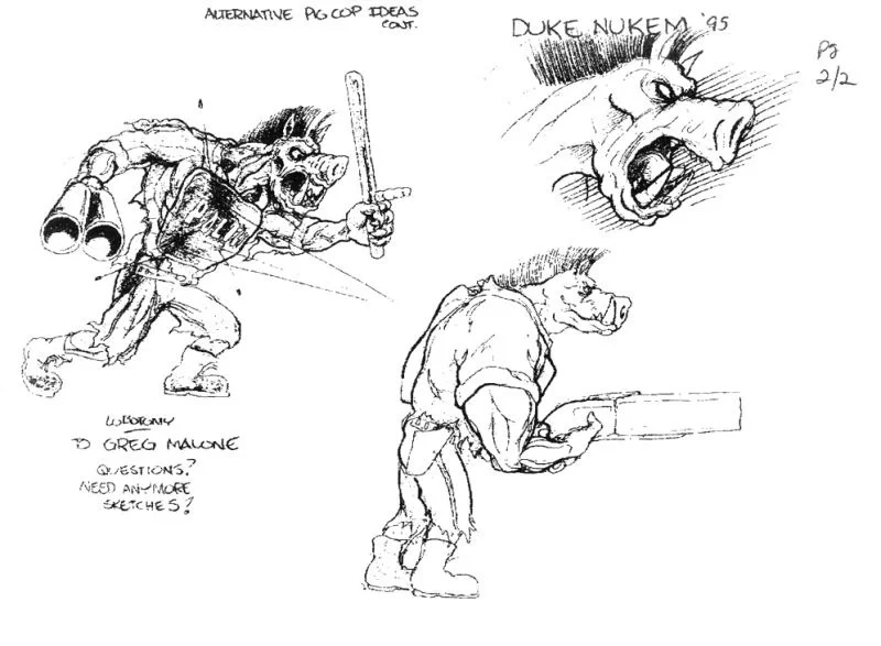 附录:系列最经典的敌人形象“猪警官”与“第二章结尾CG”草图
