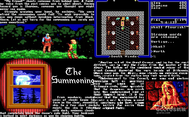 相比起难以上手的本篇RPG,GB上的创世纪可能更加适合所有玩家一些,个人最有印象的就是进入山洞前的动画了。游戏有点类似【塞尔达】与【不可思议的迷宫】的结合,趣味性十足(虽然我除了进山洞那段动画其余内容几乎都忘了)。