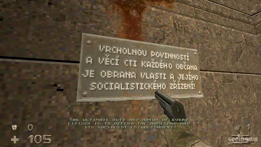这就是《HROT》里的80年代捷克斯洛伐克景象——或者至少是作者Spytihněv向你描述的样子。它当然是胡说八道瞎扯淡的,但既然本地人都没觉得这样有啥不妥,那别人也就更没必要较真。何况这是个用『Pascal』编写的自定义引擎开发,在各方面都十分古典派的FPS,胡逼与迷幻本就是它的天然属性。